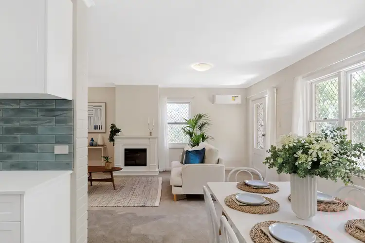 The open living, dining extends to the north facing balcony, taking in treetops, sky and plenty of daylight. The romance of the electric fireplace is perfect for gathering, sharing a drink or two, on cool winter evenings and the dining space, connected openly to the kitchen, is the perfect arena for intimate dinner parties, relaxed family meals and new air conditioning completes this area.