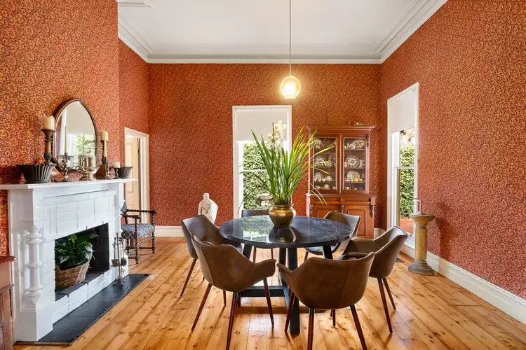 Beyond the homes traditional facade, discover an inviting arched hallway under high ceilings on original pine flooring. A formal dining room is dressed in exquisite Victorian-themed wallpaper with a pair of picture windows directing welcome light to all corners. All four bedrooms are staged to the front of the home, generous in size and serviced by a deluxe bathroom with sunken bath and separate fully tiled shower.