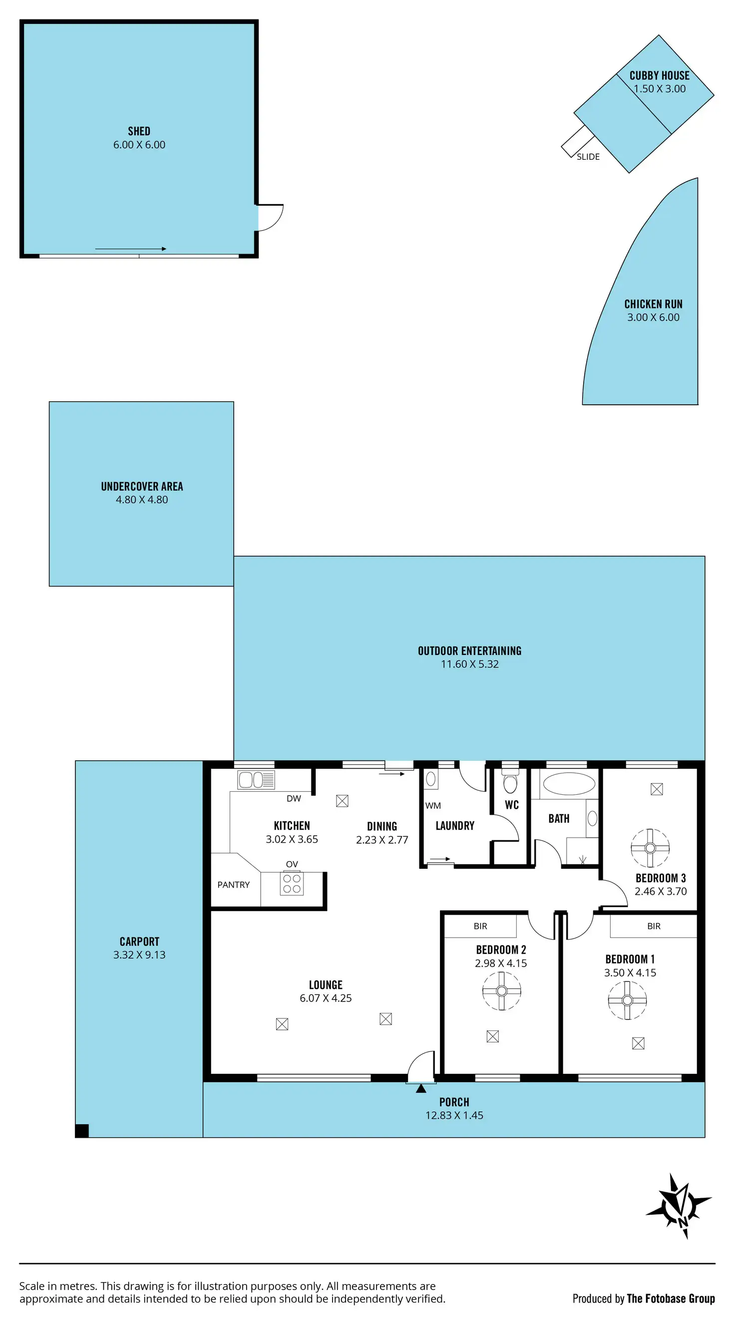 You are going to love the rear decking area that is protected by an impressive skillion roofed pergola that overlooks the back yard and is the ideal place to either entertain or relax. There is a separate undercover area that could be another parking or storage space, and a large 6m x 6m garage/workshop at the rear of the block. The back yard is fantastic with a large lawn area, a fantastic cubby house, a chicken run. The entire allotment is very well fenced making it ideal for kids and/or pets and very private and secure.