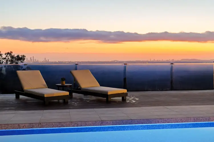 'The Summit House', commanding a prime northeast-facing aspect, this striking residence captures panoramic vistas across the ocean and city skyline. Every room has been meticulously designed to frame the sweeping outlook while embracing the tranquility of Tallai's lush, rural surrounds. From the first golden rays over the ocean to the glittering city lights at dusk, the views from this property are nothing short of extraordinary.