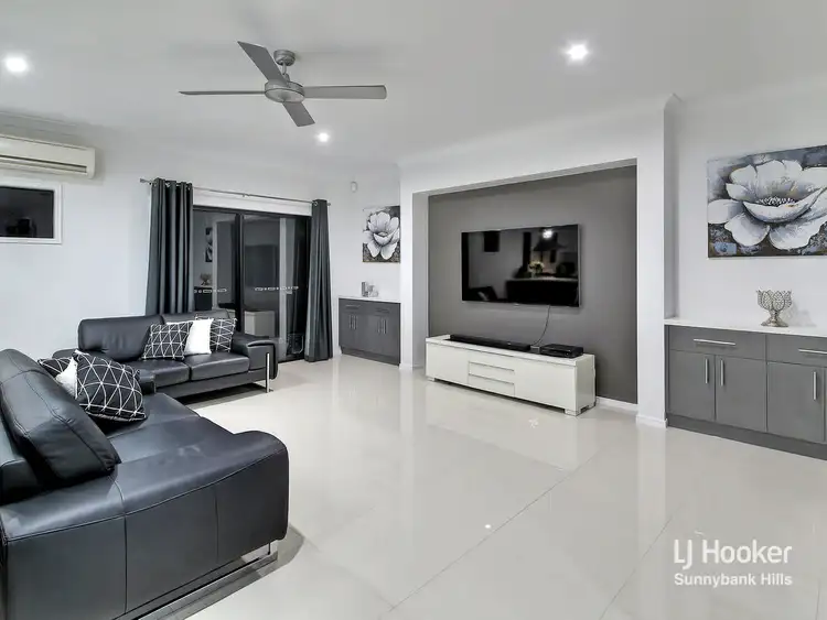 Fully fenced with an electric gate, this elevated property sits in the prestigious The Parks '888' estate, just a short walk from the Stretton State College. Boasting an excellent street appeal, with landscaped, low-maintenance gardens and a long driveway across its nearly 20m frontage, this home also offers a recently repainted roof to complete its new look.
