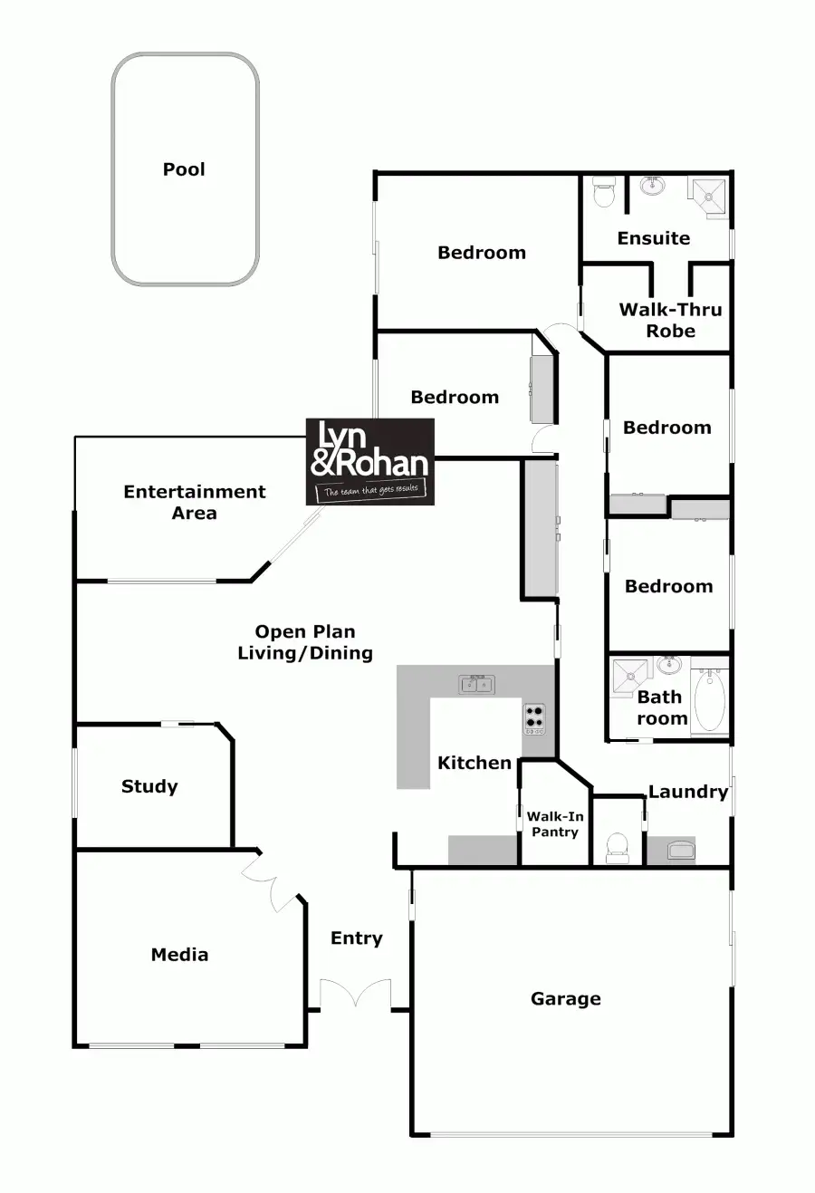 Generous living spaces include a huge open plan space that takes up the entire mid-section of the home, plus you have the added bonus of a separate media room which can be shut off from the remainder of the home.