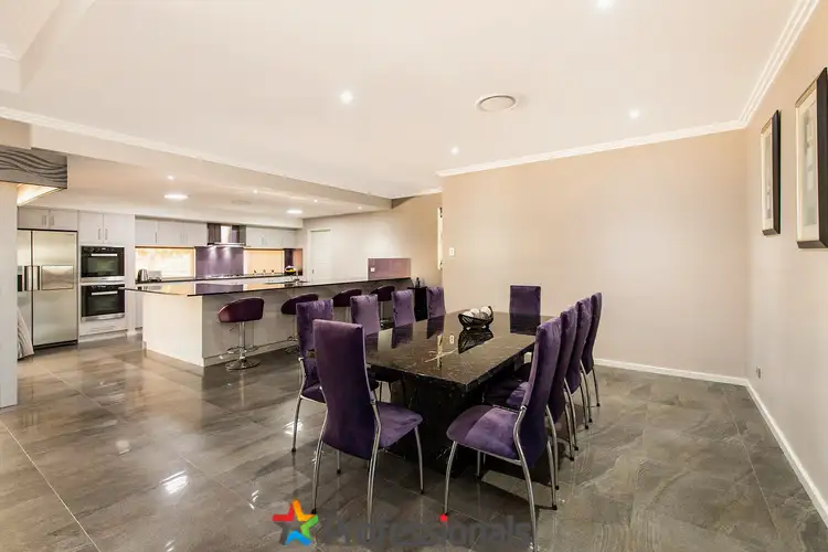 The open plan living area is at the hub of the home complete with a striking Chef's kitchen, including large stone benches, ample storage, two wall ovens, dishwasher, huge walk in pantry and natural lighting.