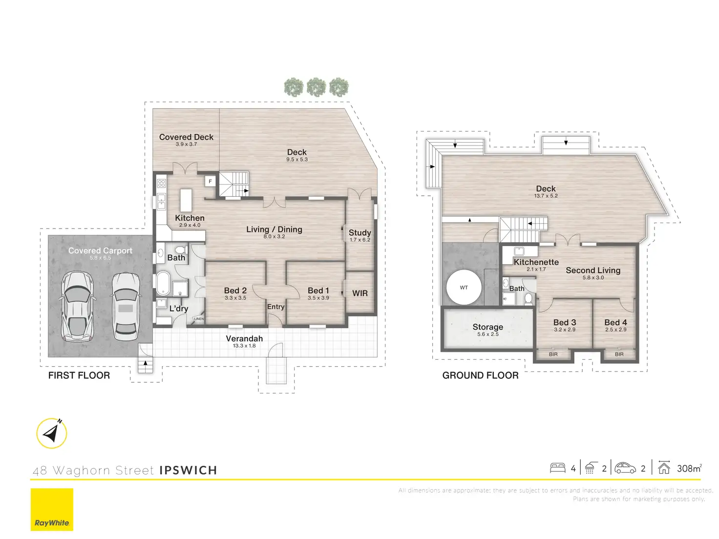 Downstairs, the property continues to impress with a second living and kitchenette. The home is equipped with air conditioning and ceiling fans, ensuring comfort all year round.