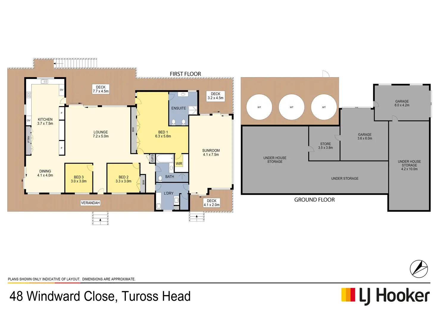 The home is elevated single level with garages underneath, and has a covered, tiled verandah on front, side and a large covered, tiled deck to the rear with a stunning eastern view.