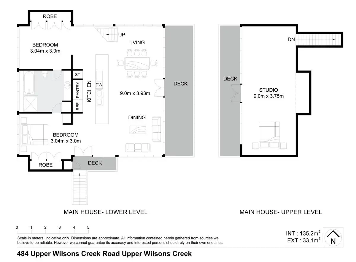 Decks around the home are perfectly set at tree height from both internal levels to provide a choice of sheltered shade or sun at any time of the day, or year.
