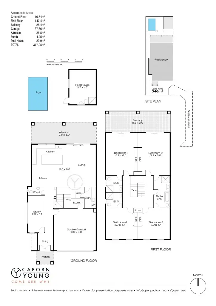 4 bedrooms 4.5 bathrooms 1 office 2 cars 1 pool 1 studio