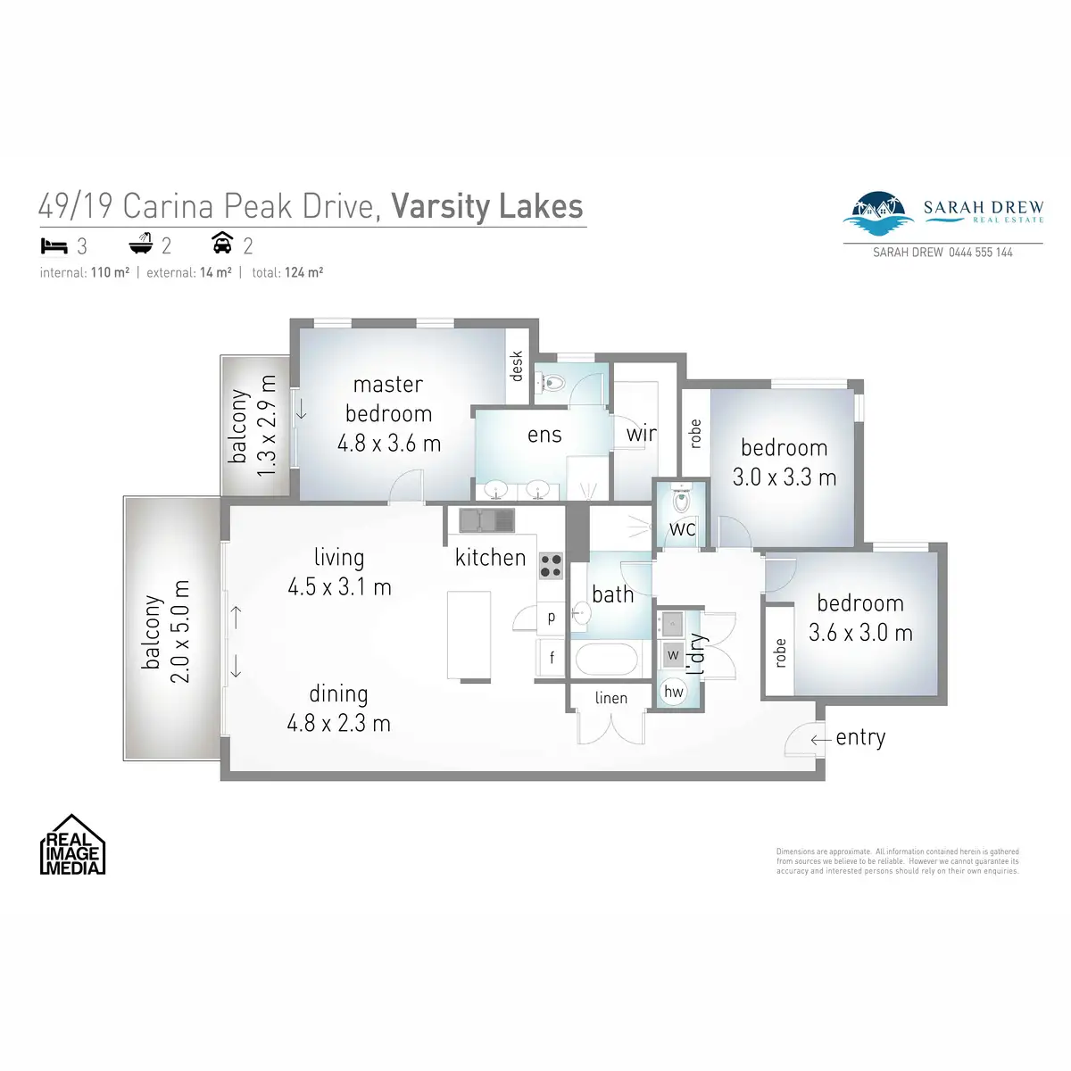 - 3 Bedrooms, Master with private balcony, study nook, air conditioning, walk in robe and ensuite