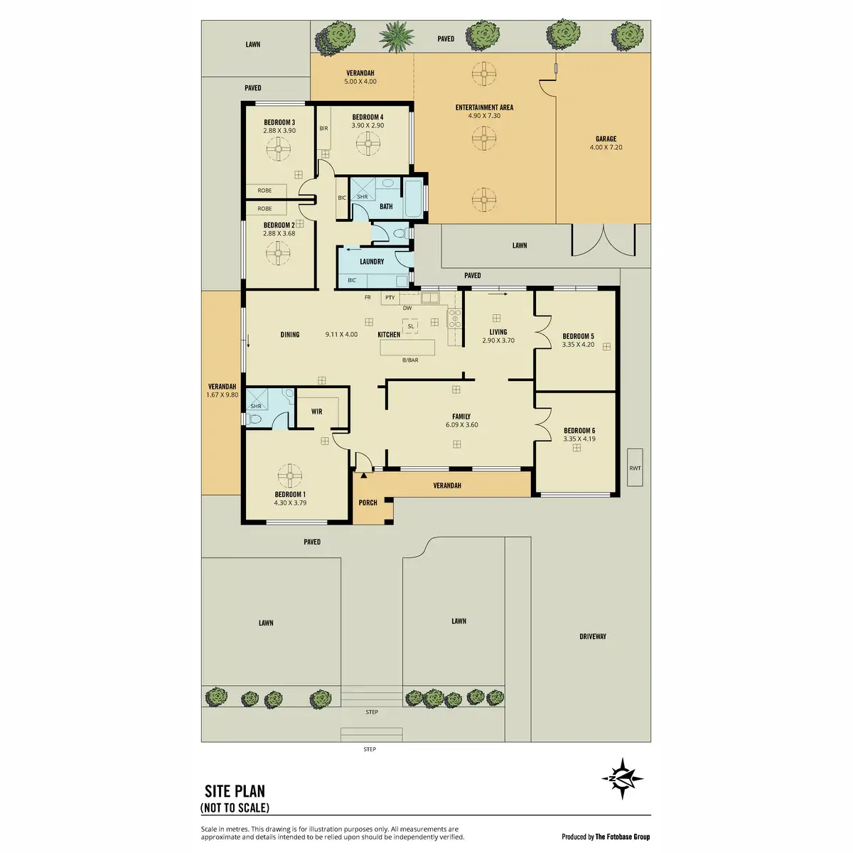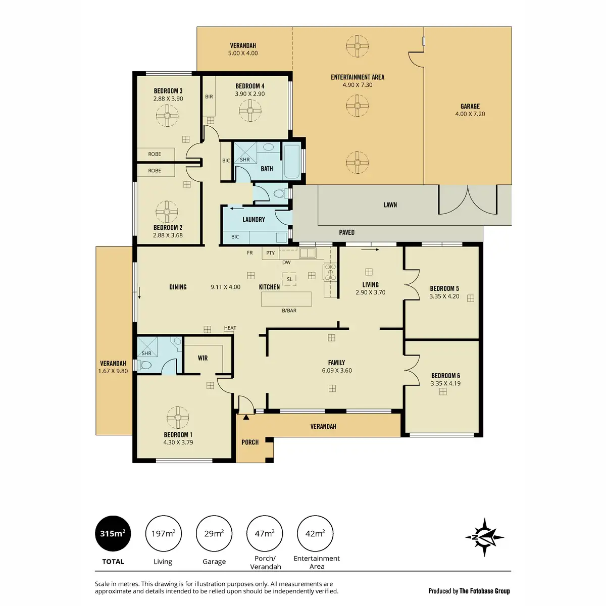 * Six bedrooms, with the master featuring a walk-in robe and ensuite.