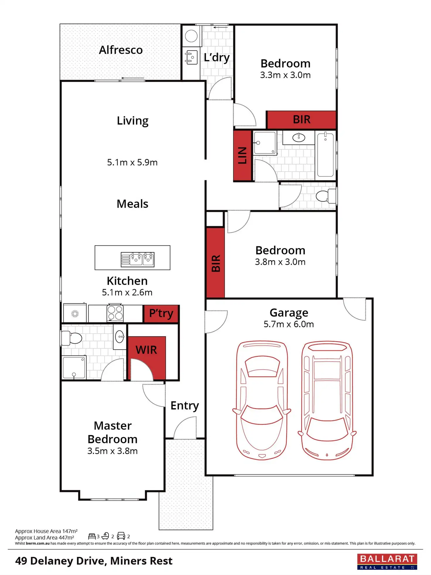 3 Bed • 2 Bath • 2 Car • 448m²