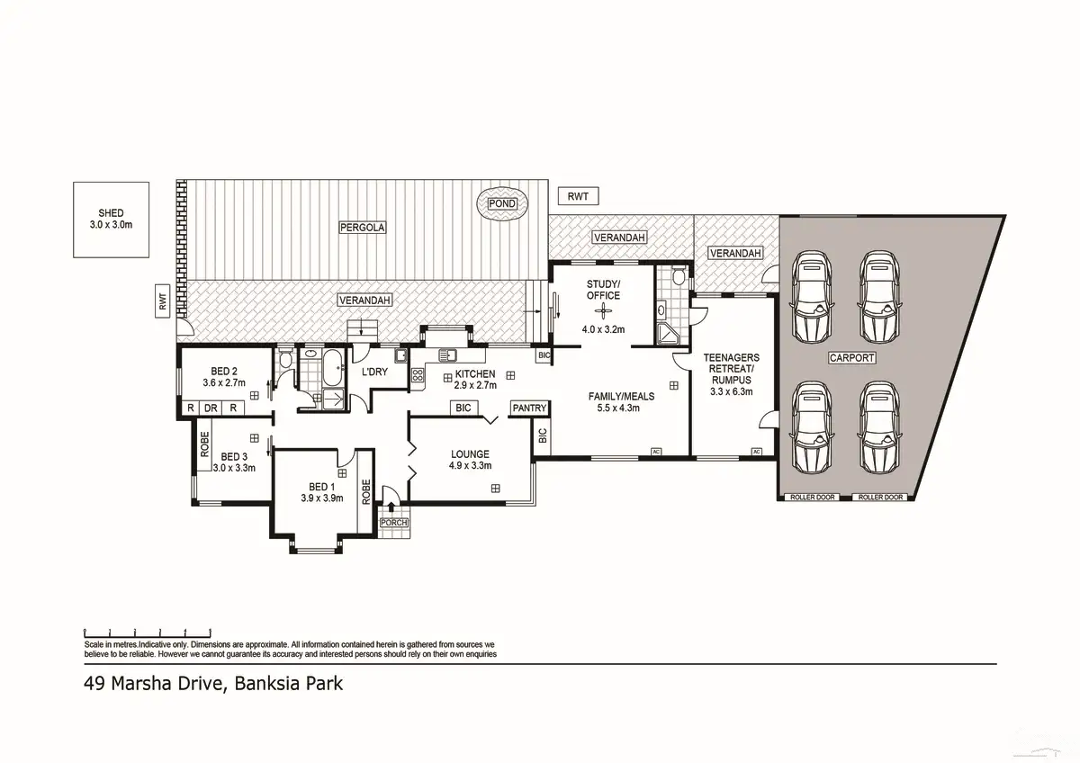 3 Bed • 2 Bath • 4 Car • 900m²