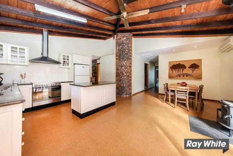 The unique quirky and incredibly comfortable lounge room features pitched stramit straw ceiling, timber lined walls with curved hallways and an artistic varietal space with steps down to the sunken sitting area in front of the cosy open fireplace. Both the Master bedroom and spacious family room have magnificent views through wide set windows.