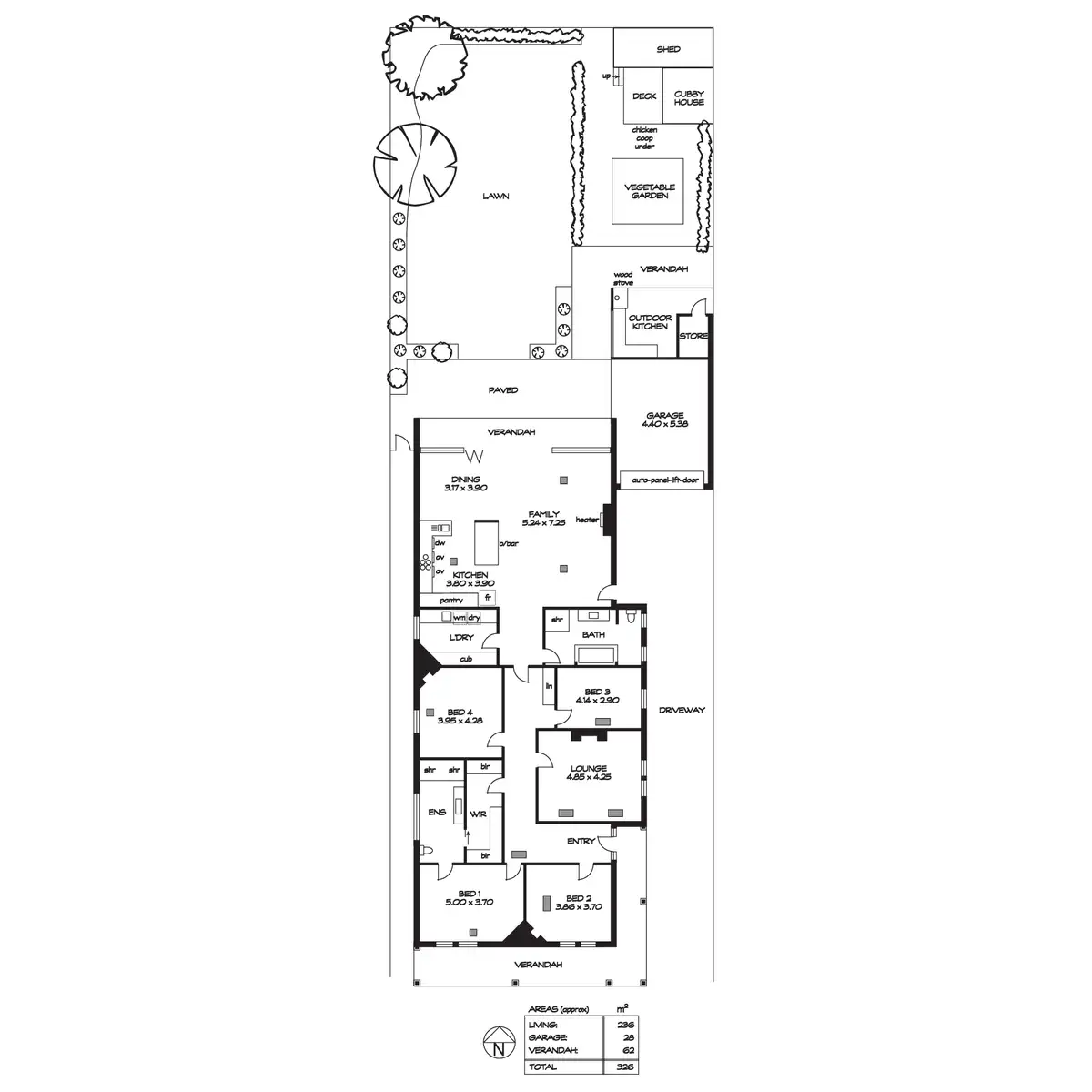 • Outdoor entertaining area and large rear covered patio with Metters no.2 wood stove/oven