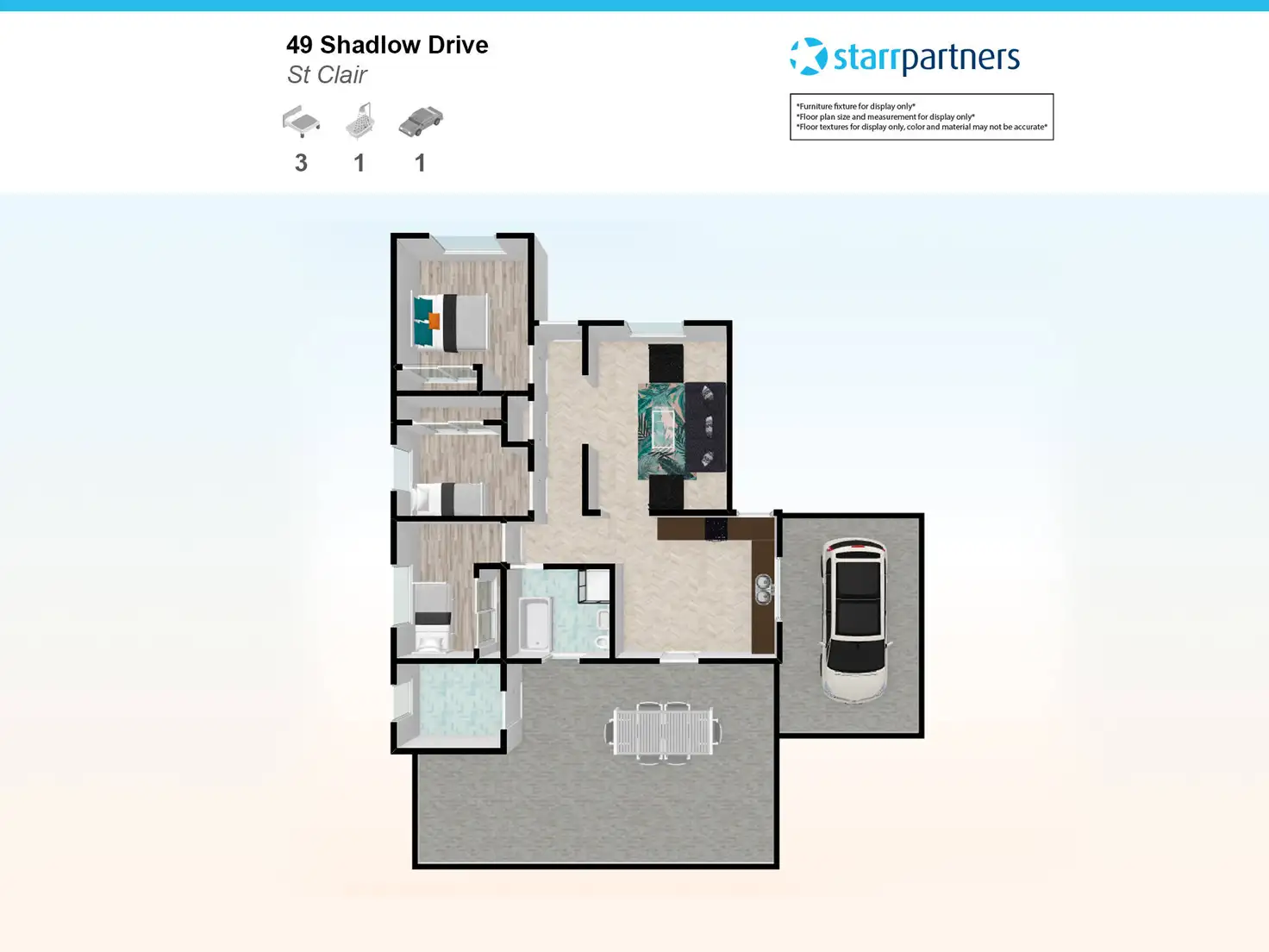 3 Bed • 1 Bath • 2 Car • 605m²