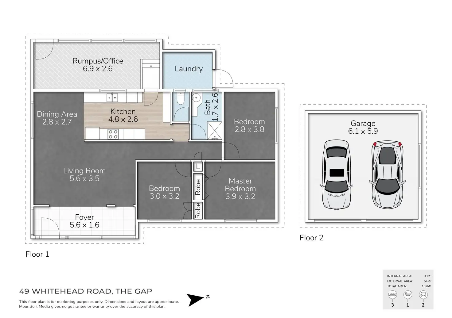 - Air-conditioned living area, office/rumpus and main bedroom