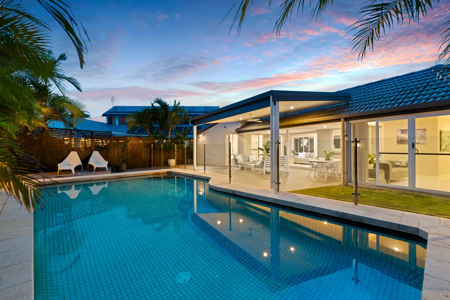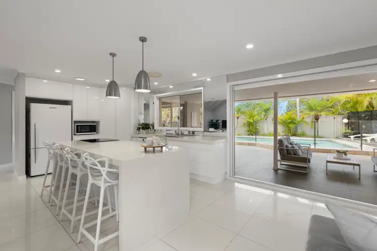 Outside, you'll find a sparkling fully tiled, saltwater swimming pool, undercover entertainment pavilion with outdoor fan, low maintenance tropical gardens, as well as private access to the rear parkland perfect for hosting gatherings or simply enjoying the serene surroundings. The double garage with internal access to the home provides secure parking for two vehicles, off street car parking for multiple cars from the automatic driveway gate plus a hardstand for parking your boat or caravan complete with shadesails.