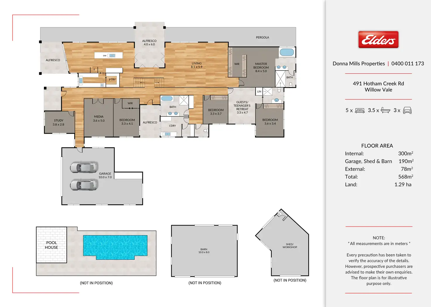 * Extra-large working shed, styled in the same fashion as the main house that could be easily transformed into a self-contained cottage for long stay guest or extra income