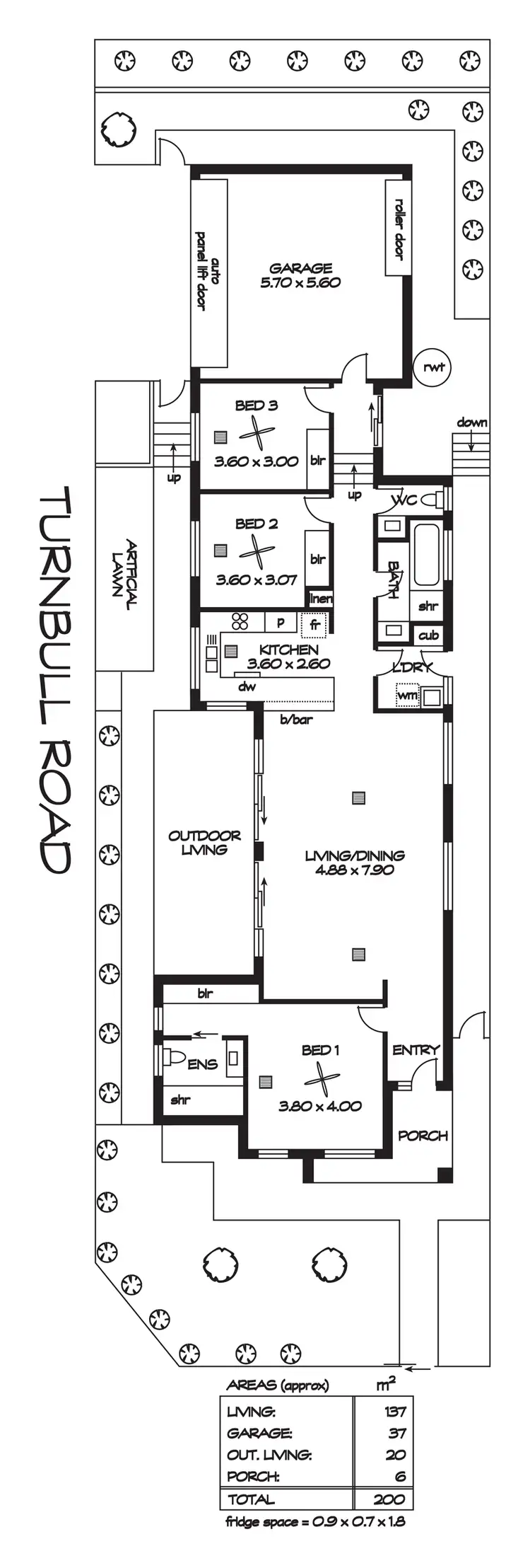 A clever design provides a double garage with side street access from Turnbull Road. An automatic panel lift door, rear roller door and interior access to the home add a desirable convenience. A tiered rear garden will allow a space to grow some vegies across a low maintenance easy care allotment complete with rain water tank plumbed to the home and fully landscaped front garden.