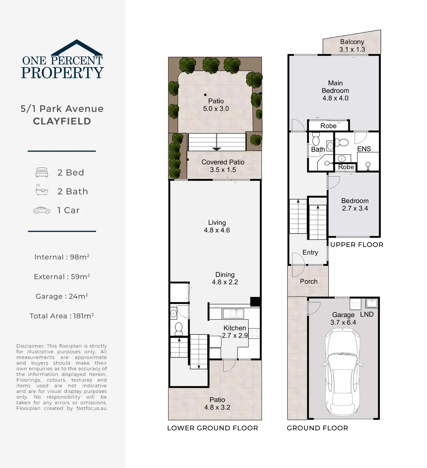 2 Bed • 2 Bath • 1 Car • 181m²