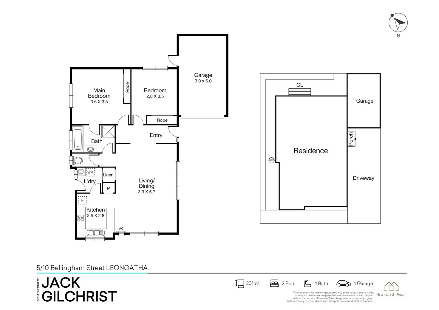 2 Bed • 1 Bath • 1 Car • 201m²