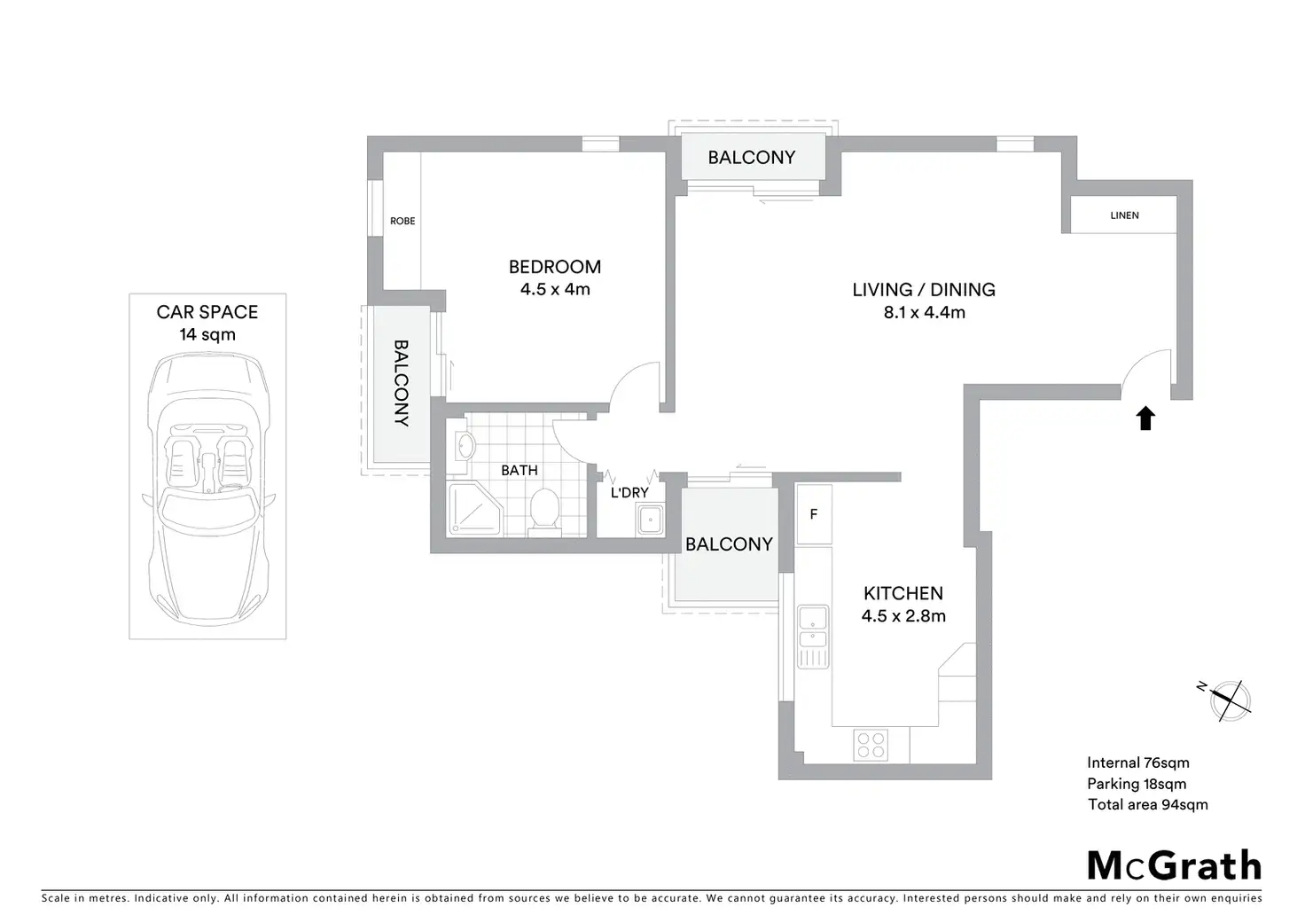 1 Bed • 1 Bath • 1 Car • 94m²
