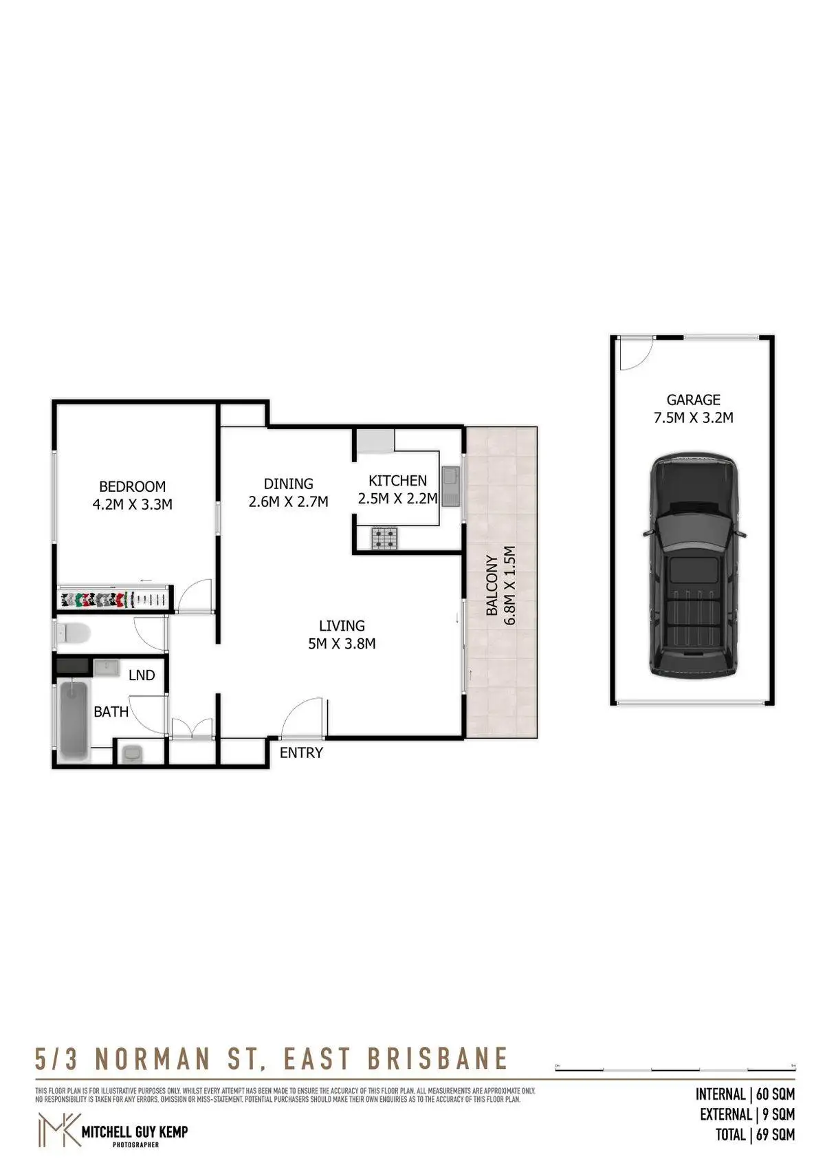 1 Bed • 1 Bath • 1 Car