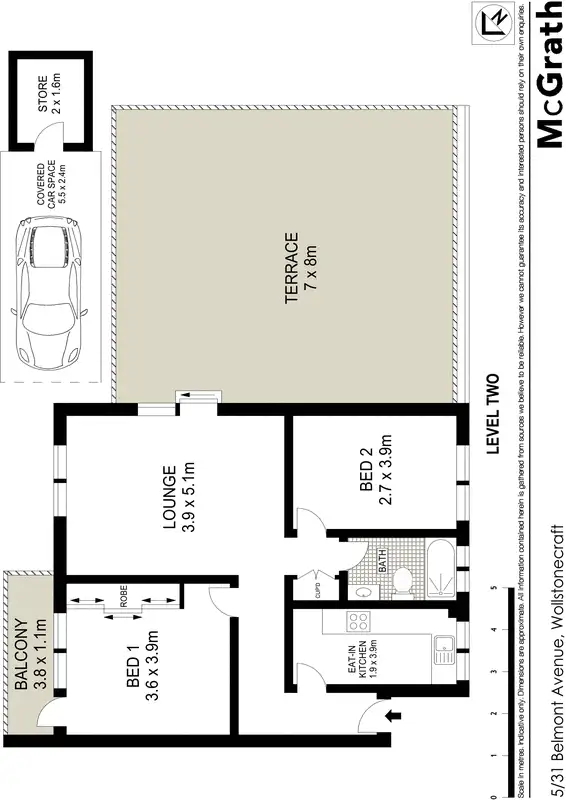 2 Bed • 1 Bath • 1 Car • 140m²