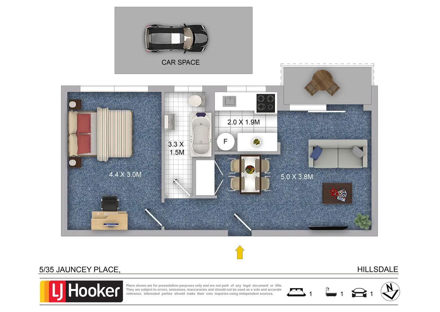 1 Bed • 1 Bath • 1 Car