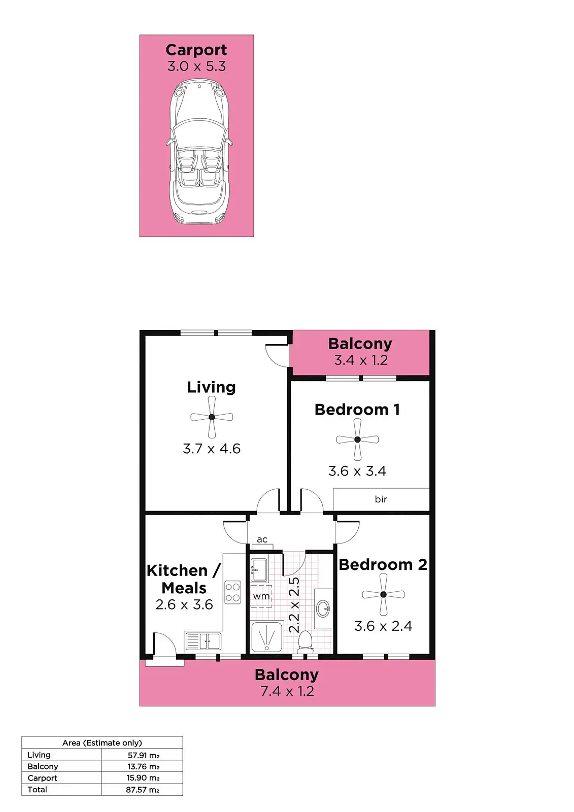 2 Bed • 1 Bath • 1 Car