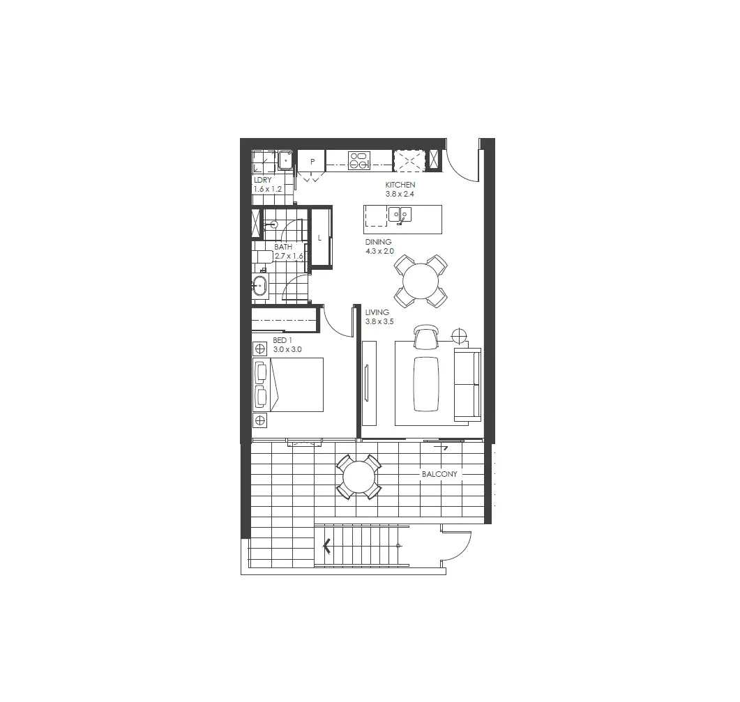1 Bed • 1 Bath • 1 Car