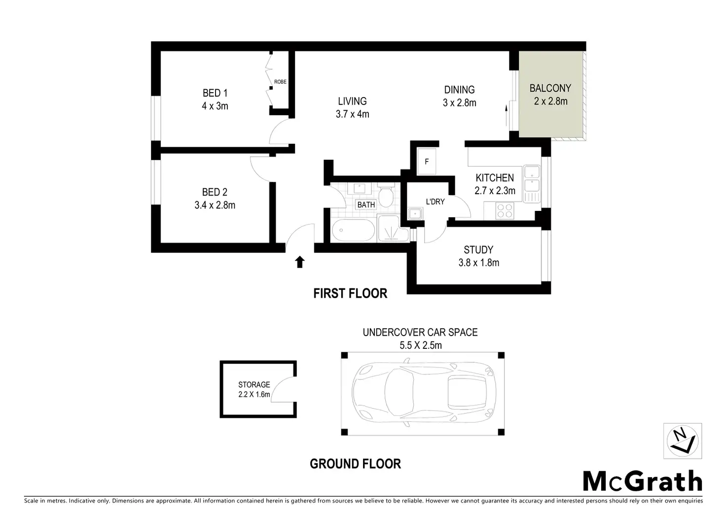 2 Bed • 1 Bath • 1 Car • 96m²