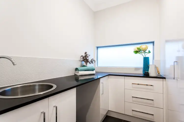 Striking timber floors. The three bedrooms feature soft quality carpeting. The main sparkling bathrooms have Free Standing Baths and quality fixtures. The laundry's features ample built in storage and expect to be thrilled with the array of storage offered in the bedrooms to the kitchens and butler's pantries - it's all been thought of.