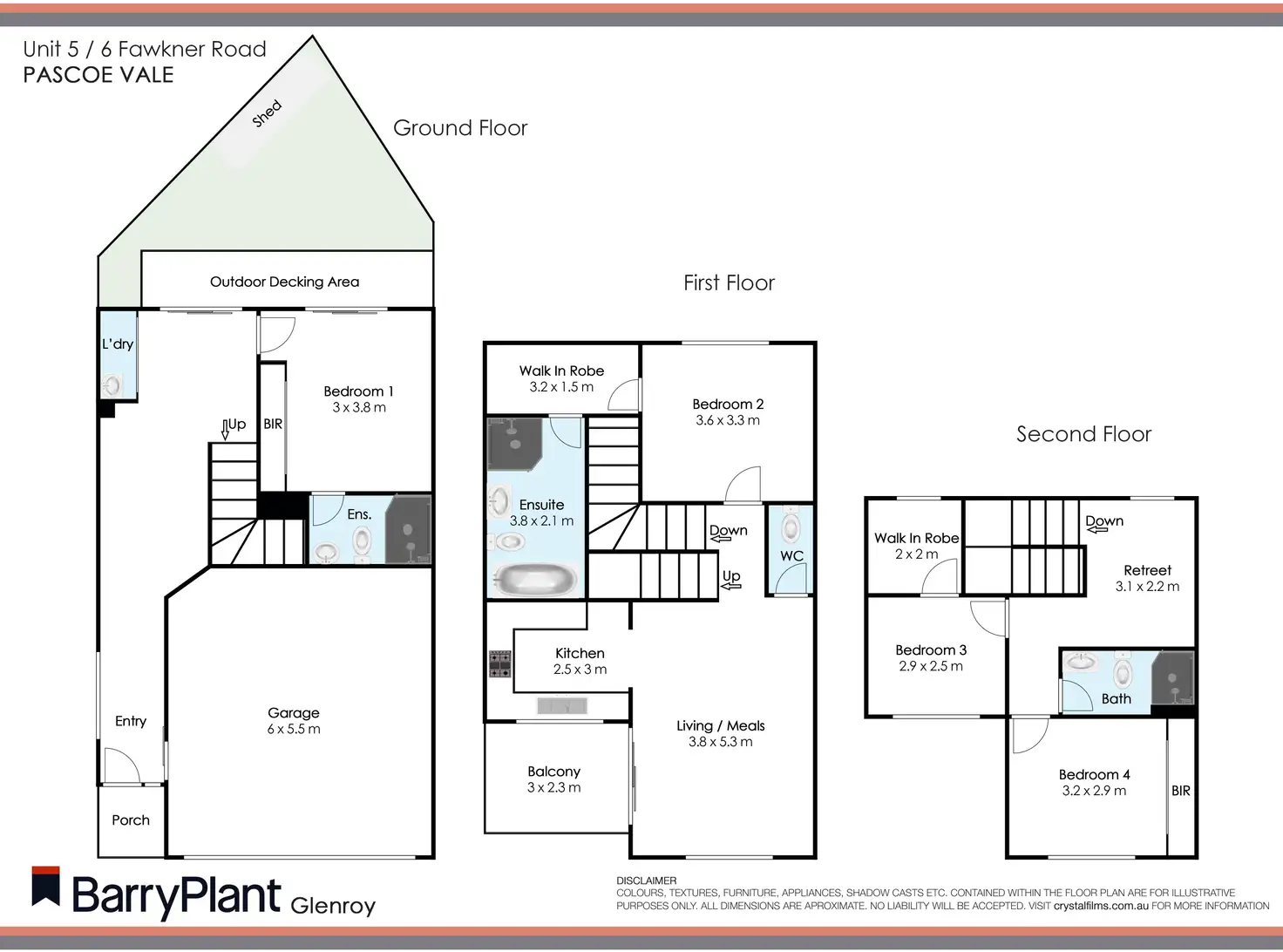 Ground Level: Double lock-up garage with direct internal access. King size bedroom with built-in robes and a stylish ensuite, European laundry and sliding door access to courtyard which also offers garden shed.