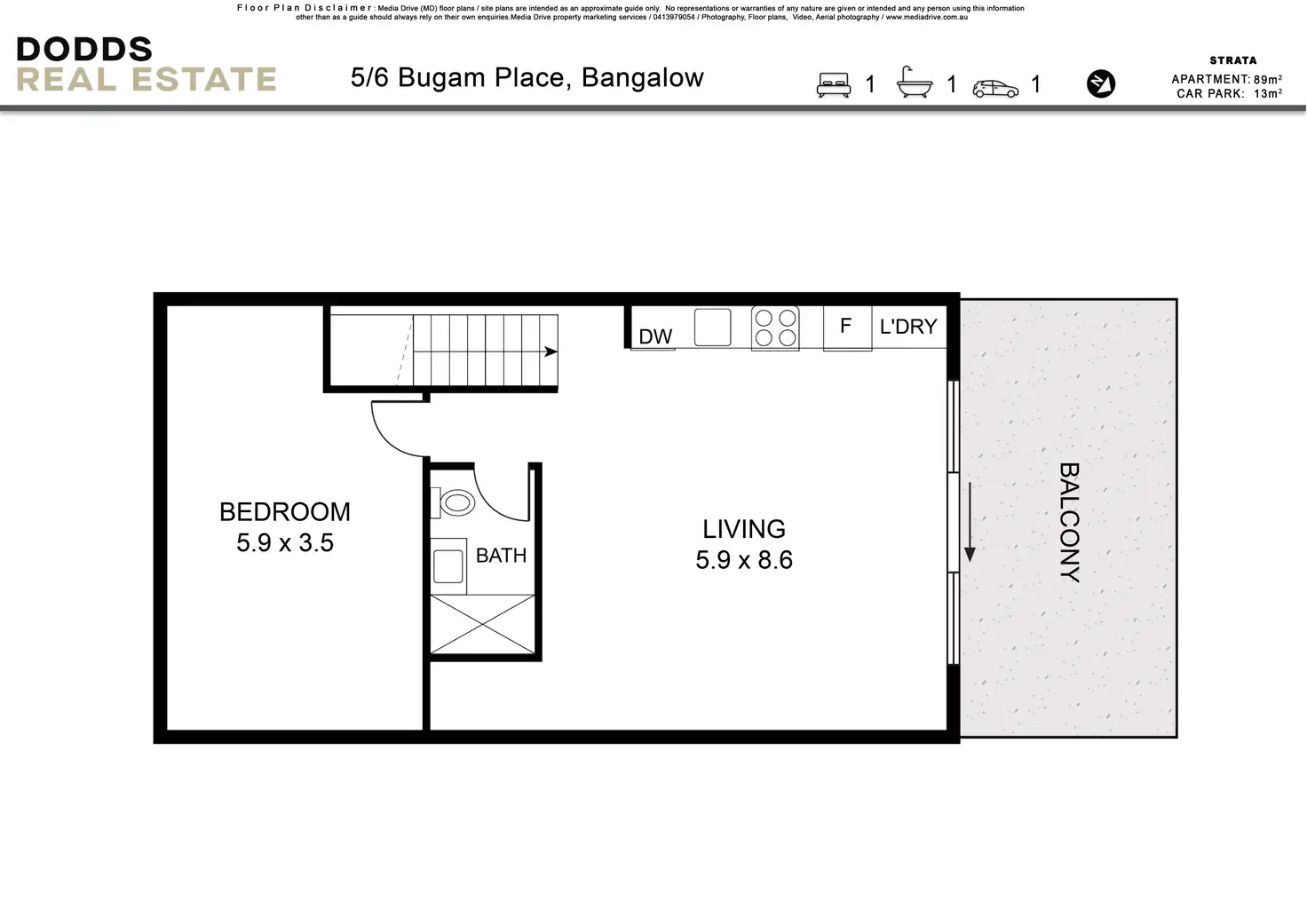 1 Bed • 1 Bath • 1 Car