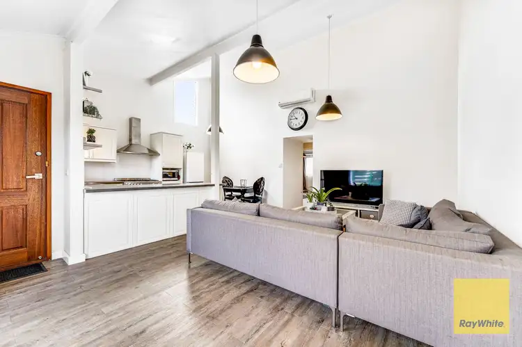 Welcomed with stunning cathedral ceilings, this beautiful unique brilliance offers plenty of character like no other. Equipped with 2 good-sized bedrooms, an open plan living space featuring plenty of natural sunlight, feature pendant lights and high cathedral ceilings, simply expressing the comforting ambience this home has to offer. The dining area, which is adjacent to a fully renovated Hampton style kitchen, which offers a gas cooktop, double sink, tiled splashback and an abundance of cupboard space.