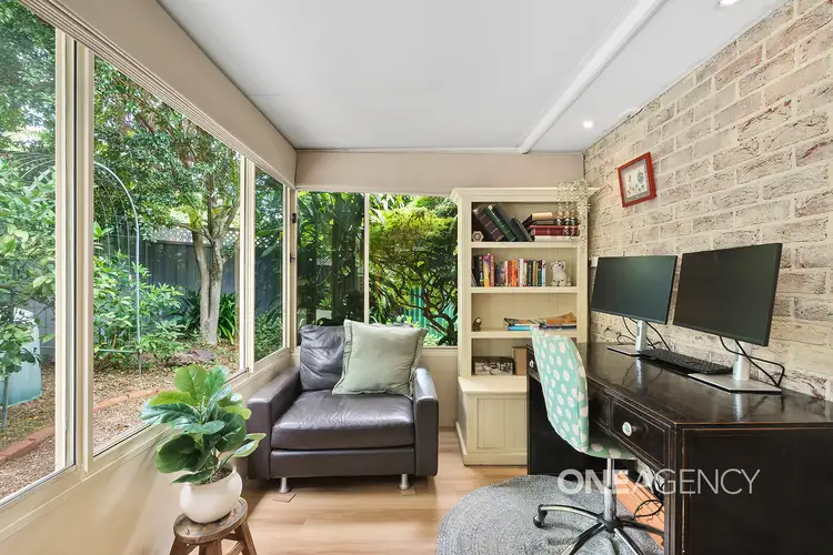 Inside, the thoughtful single level layout provides a sense of flow and functionality. Both bedrooms are generously sized, complete with built-in wardrobes and ceiling fans, while the bathroom is designed with convenience in mind, featuring a separate bath, shower, and toilet. The enclosed sunroom, with its abundance of windows overlooks a private courtyard, inviting the outdoors in. Flooded with natural light and framed by lush greenery, its the ideal space for quiet mornings, relaxed afternoons, and an office zone with a view for those that work from home.
