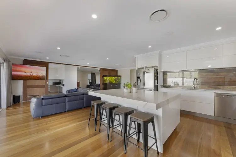 Designed with grandeur in mind and built to the highest quality this stunning residence has wow factor as soon as you walk through the custom-made soaring double timber doors that open to an elegant and expansive hallway which draws you in and effortlessly flows through to the open plan living, kitchen and dining areas.