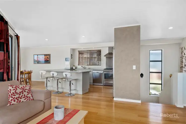 Moving upstairs via the Tasmanian Oak timber stairwell you immediately appreciate the elevated position, as you walk directly into the main living area with a picture window taking in the outstanding view. The open plan allows one to alternate your perspective from a variety of viewpoints, whether that be in the kitchen, standing by the Jindarra wood heater, at the dining table or enjoying a wine on the deck after a day at the beach. The heart of the home is centrally located between the lounge and dining, whereby one can be involved directly with family and friends alike while cooking up a feast' on the freestanding gas cooktop & electric oven, additionally serviced by the fridge, dishwasher, range hood and ample cupboard storage above and below the bench top. The final compliment to this level is the master bedroom with sea views and walk in robe, second bedroom with built-ins and the main bathroom featuring vanity, toilet, bath and separate shower.