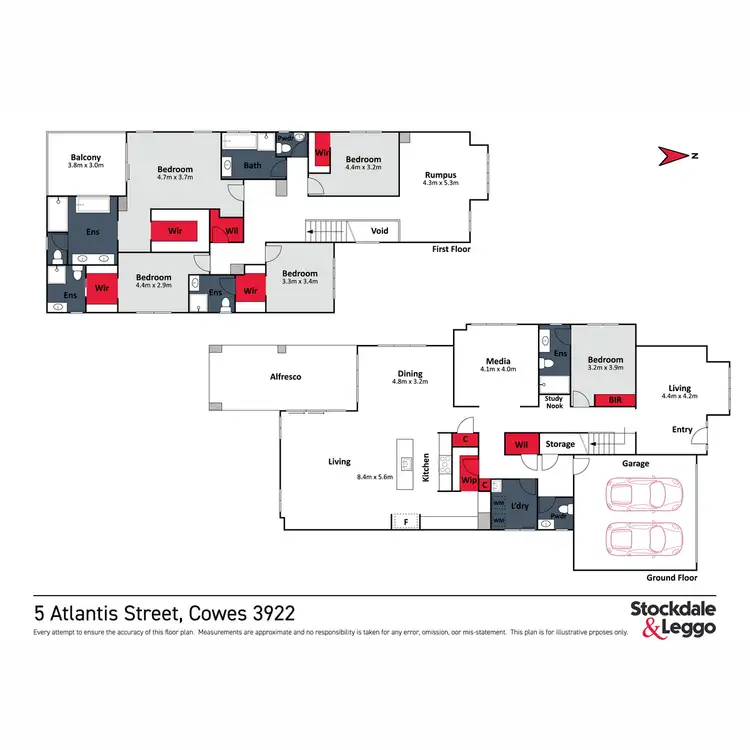 Upstairs, a second living area provides a fantastic breakout space for kids or teens, while four further bedrooms each include walk-in robes. Three of them enjoy their own private ensuites, and the fourth is serviced by a central family bathroom. The master suite is pure indulgence with a luxurious ensuite, walk-in robe and private balcony—your personal retreat to start or end the day in peace.
