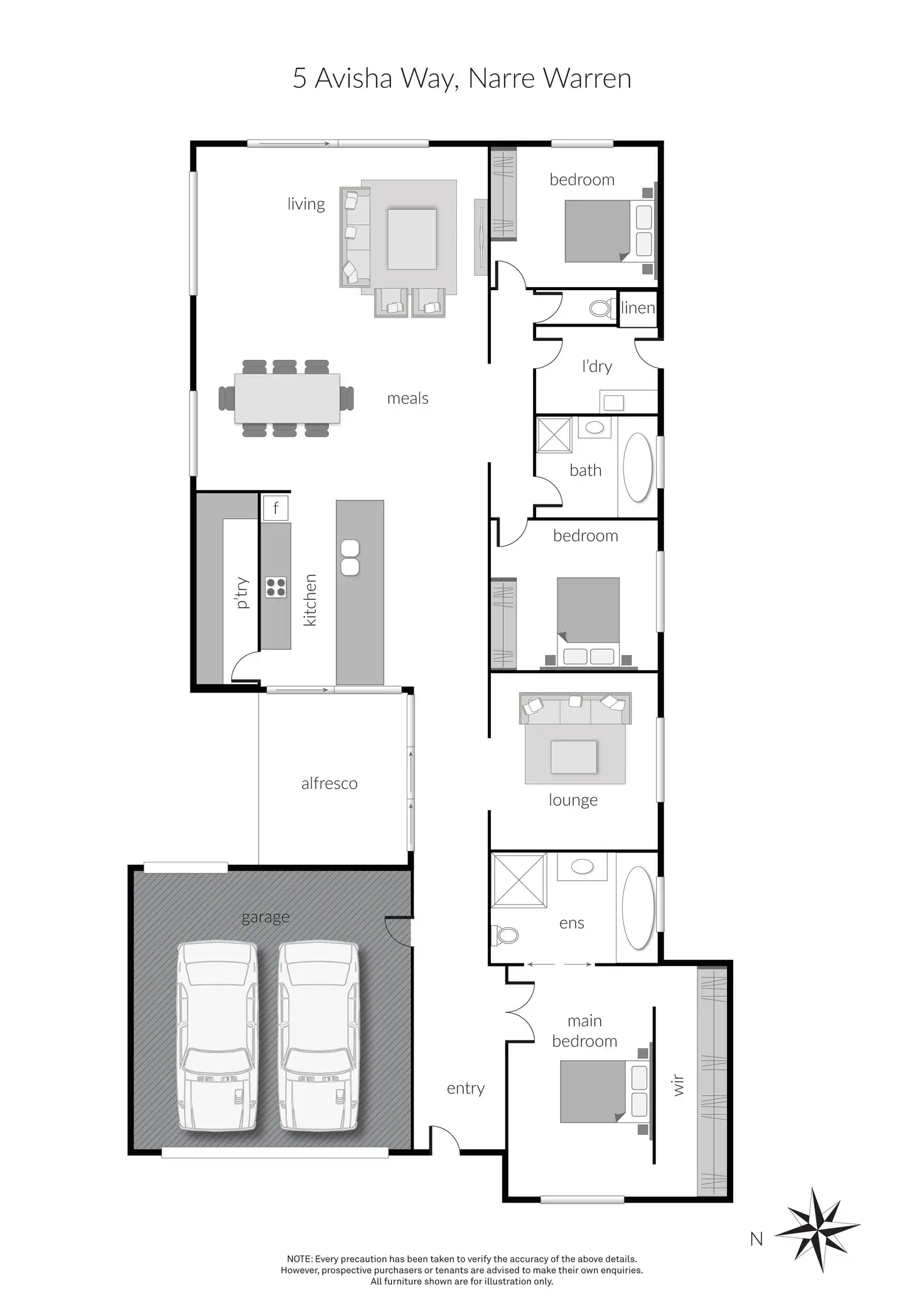 With ducted heating, split-system cooling, a double garage, and modern finishes throughout, every detail has been considered. And when it comes to location, you simply can't ask for more. Walking distance to parks, schools, and public transport, and just minutes from Fountain Gate Shopping Centre and major freeways; this is the lifestyle you've been looking for.