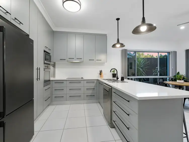 For the Entertainer, your dream kitchen awaits you! A dream workspace with oversized cupboards to the ceiling, an abundance of drawers and cupboards for storage, ample bench space, ceramic cooktop, retractable range hood, dishwasher, stone bench tops and a view of your private oasis to the rear.