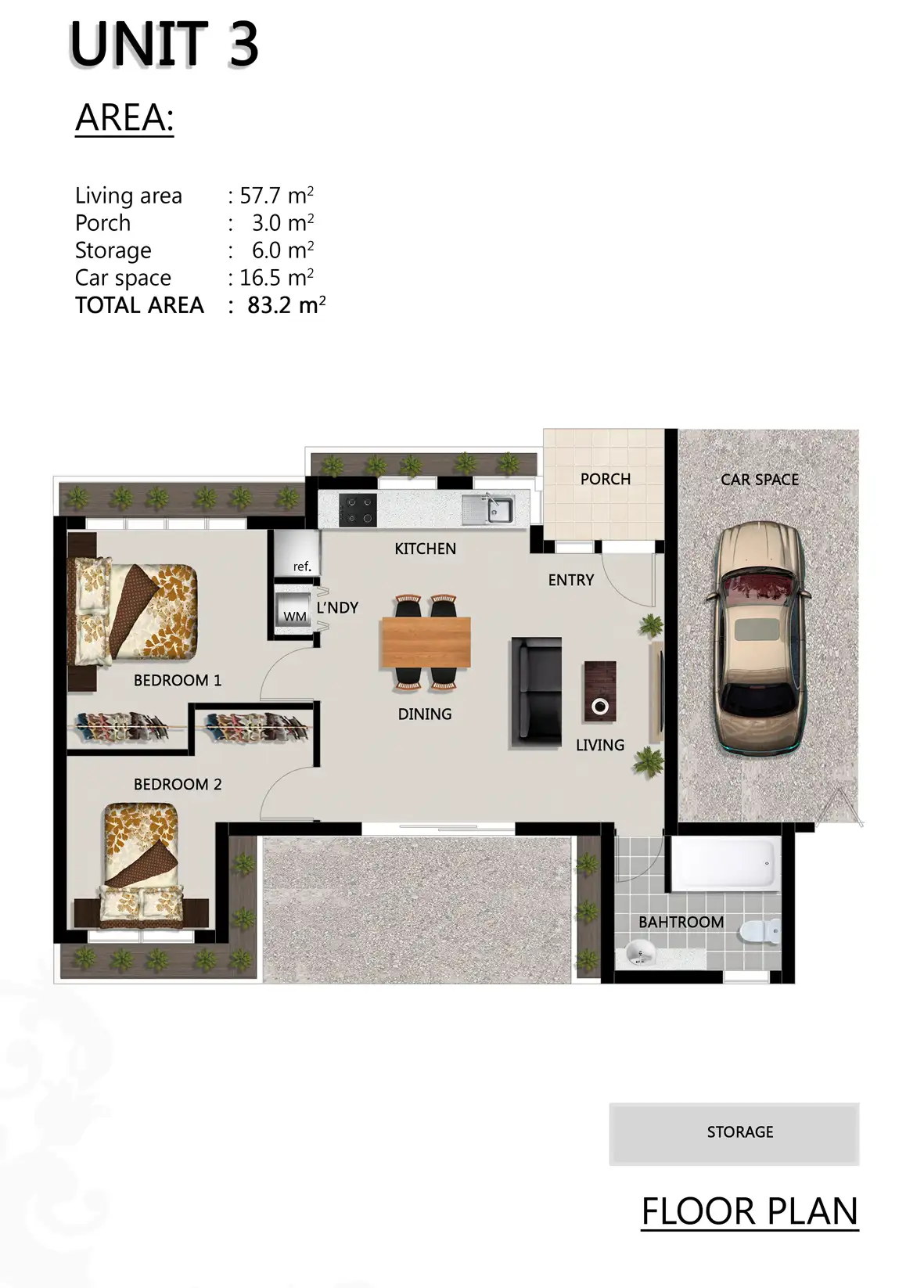 2 Bed • 1 Bath • 1 Car • 154m²