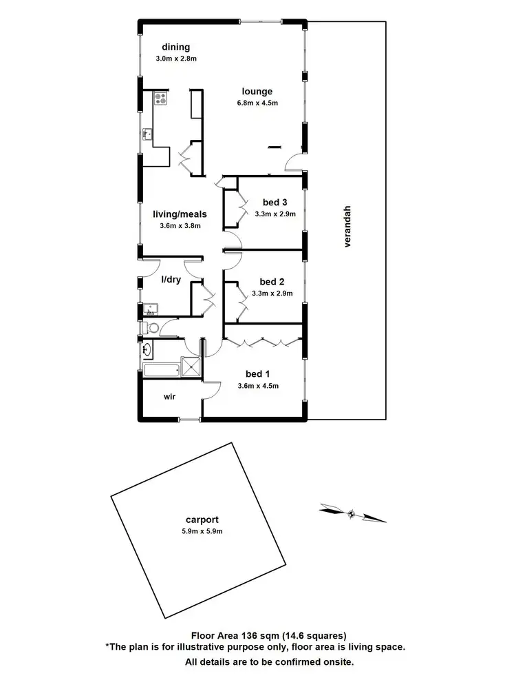 3 Bed • 1 Bath • 2 Car • 9787m²