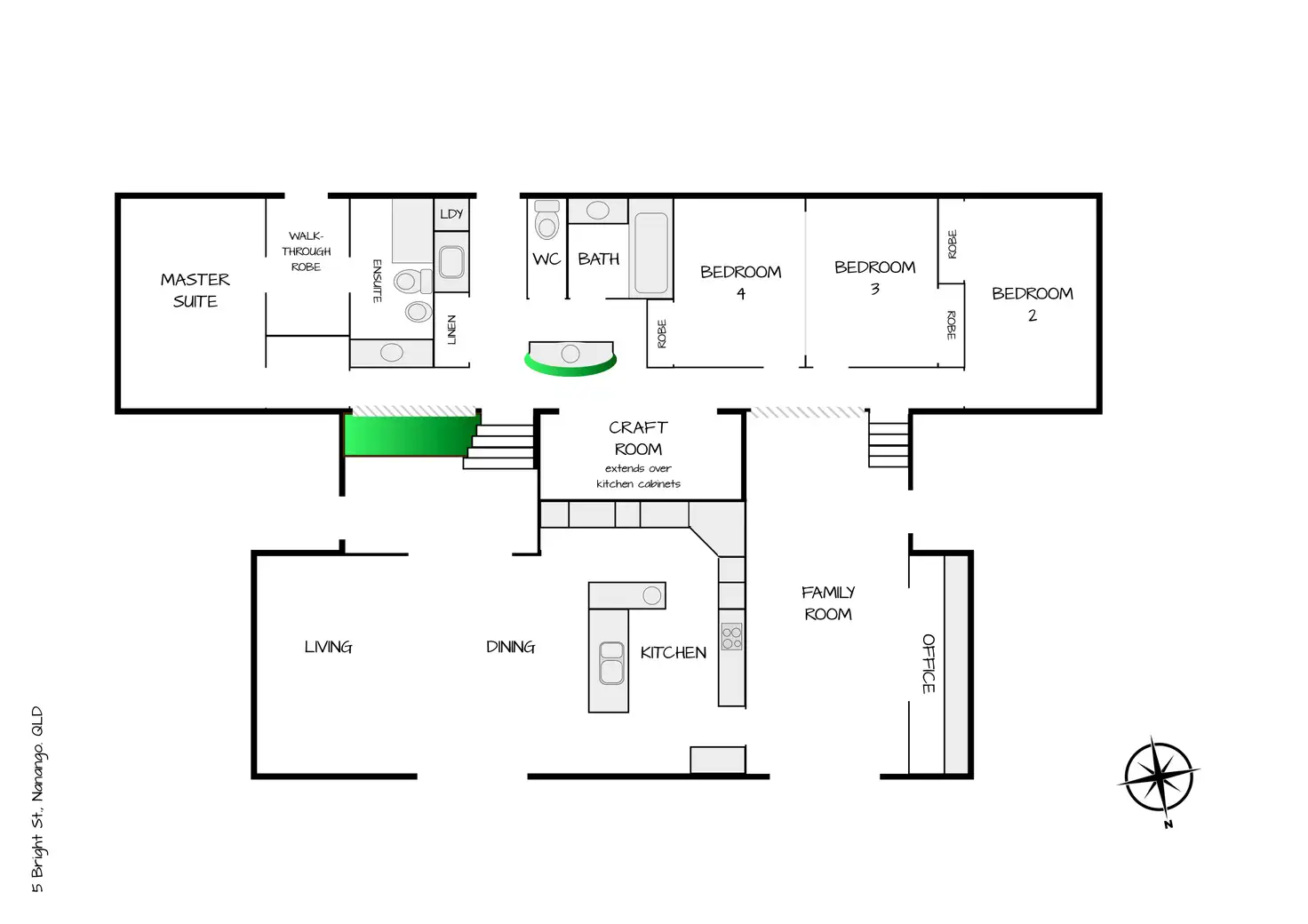 A large cook’s kitchen with a pyrolytic oven, granite bench tops & multiple workstations perfectly complements the open plan dining & living area. Next door is a separate large family room with an office annex. To top it off, there is a spacious dedicated craft room (or kid’s study area). Massive storage throughout the whole home means you’ll always have a place for everything.