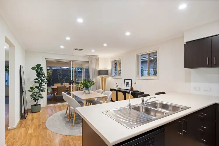 A separate lounge creates a calm and comfortable haven - ideal for curling up with a book, sharing quiet conversation, or settling in for family movie nights - before opening into the open-plan kitchen and dining zone. Here, daily life unfolds effortlessly, from quick weekday breakfasts to lingering family dinners, all with a view to the backyard.