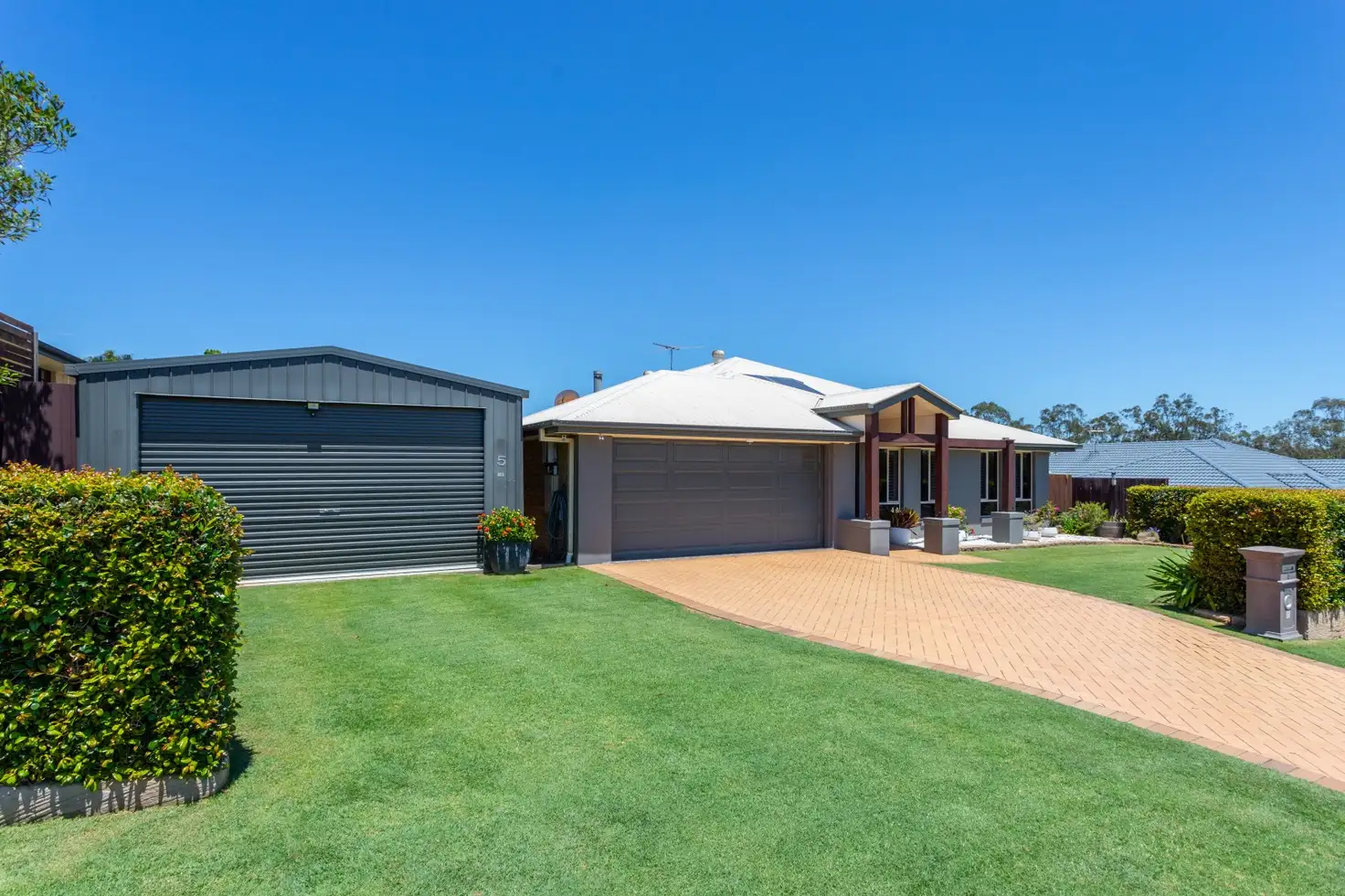 The front yard boasts a 6m x 5.8m shed with rear roller door enabling vehicle access.