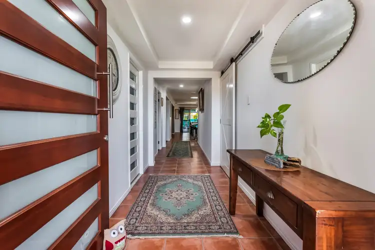 3 bedrooms at the front of the home comprise a separate wing and has its own tiled TV/living room. This area has split system A/C, ceiling fan and sky-lite. All bedrooms open from this area and also include the large family bathroom and separate toilet. This area can be closed off in the hall by a gorgeous barn door.