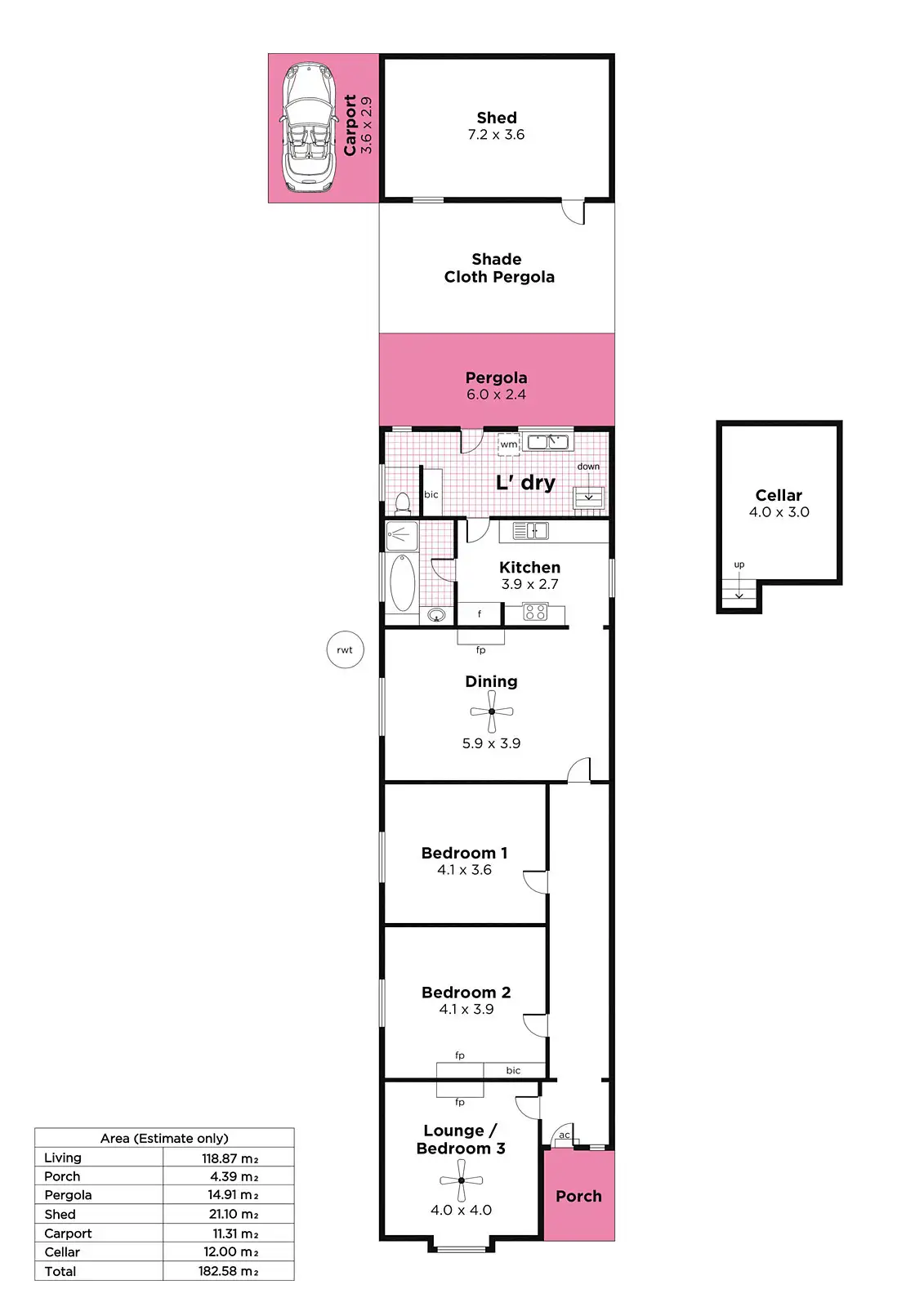 3 Bed • 1 Bath • 1 Car • 444m²