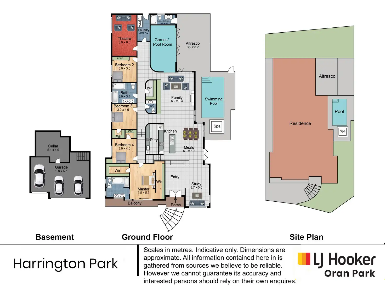 * Large theatre room with theatre lighting, teared seating and six electric recliner seats