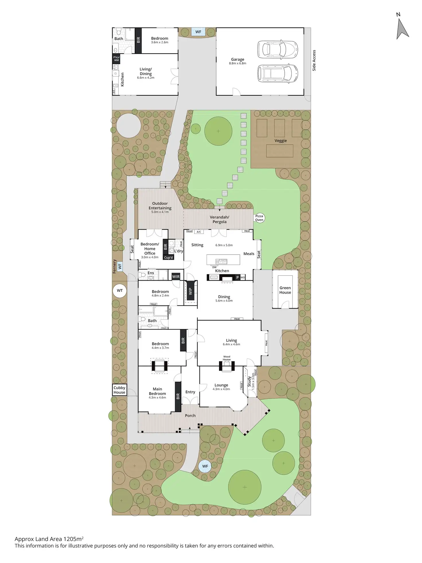 Overlooking the lush north-facing gardens and sun-drenched alfresco deck, the kitchen features a long island bench, stone surfaces, stainless steel appliances and a walk-in pantry. The grounds are anchored by a majestic 70-year-old walnut tree, encircled by established ornamental plantings, a variety of fruit trees, raised vegetable beds and a custom-built pizza oven - an idyllic setting for entertaining or simply enjoying the rhythm of the seasons.